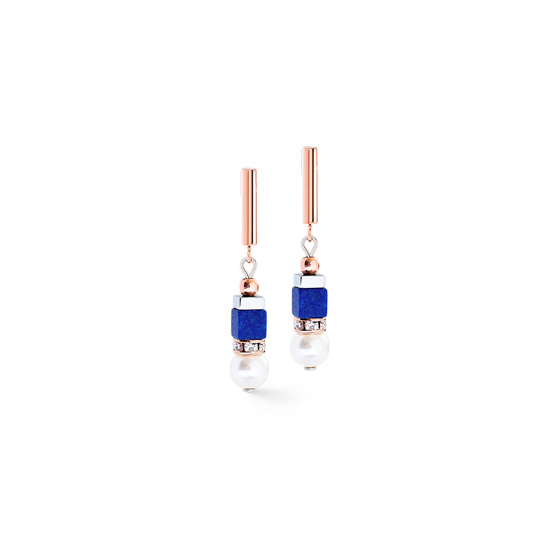 Elevate your everyday elegance with these refined elegant earrings, where serene tonal blues meet crisp white tones, accented by warm rose gold details. Crafted with genuine natural lapis, each piece captures the stone's distinctive depth and character, creating a sophisticated accessory that transitions seamlessly from day to evening. The harmonious colour palette offers versatile styling possibilities while the quality materials ensure lasting beauty and presence.